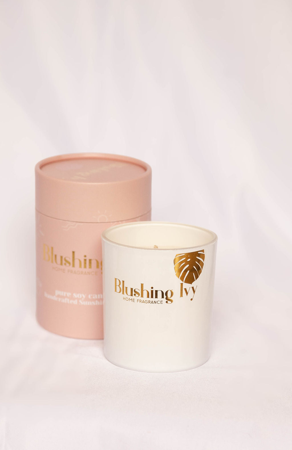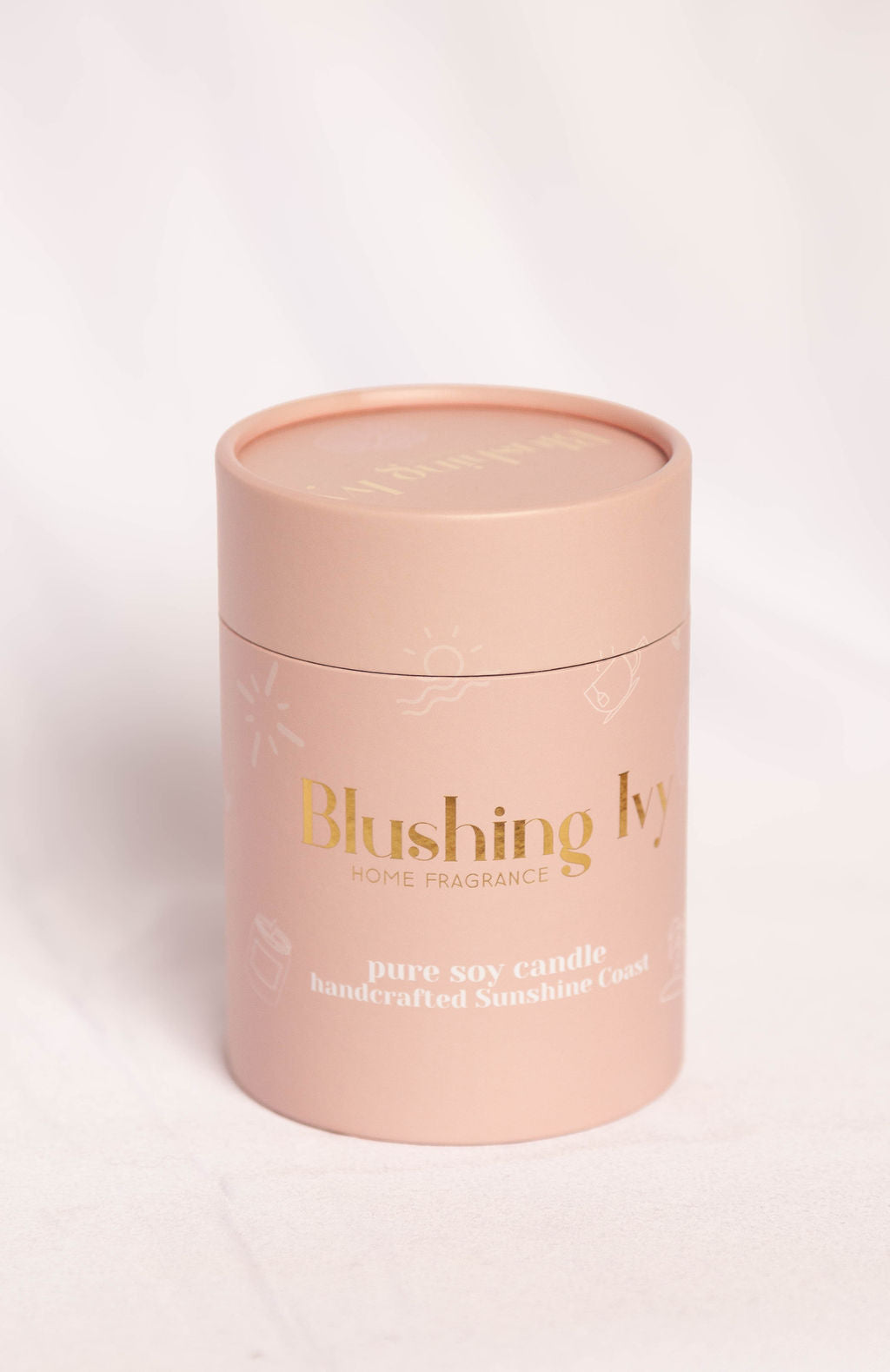 NEW!! Now with our beautiful customised packaging - each candle comes in its own blush pink cylinder with our signature gold logo and Blushing Ivy icons. Perfect for gifting and no need to wrap!