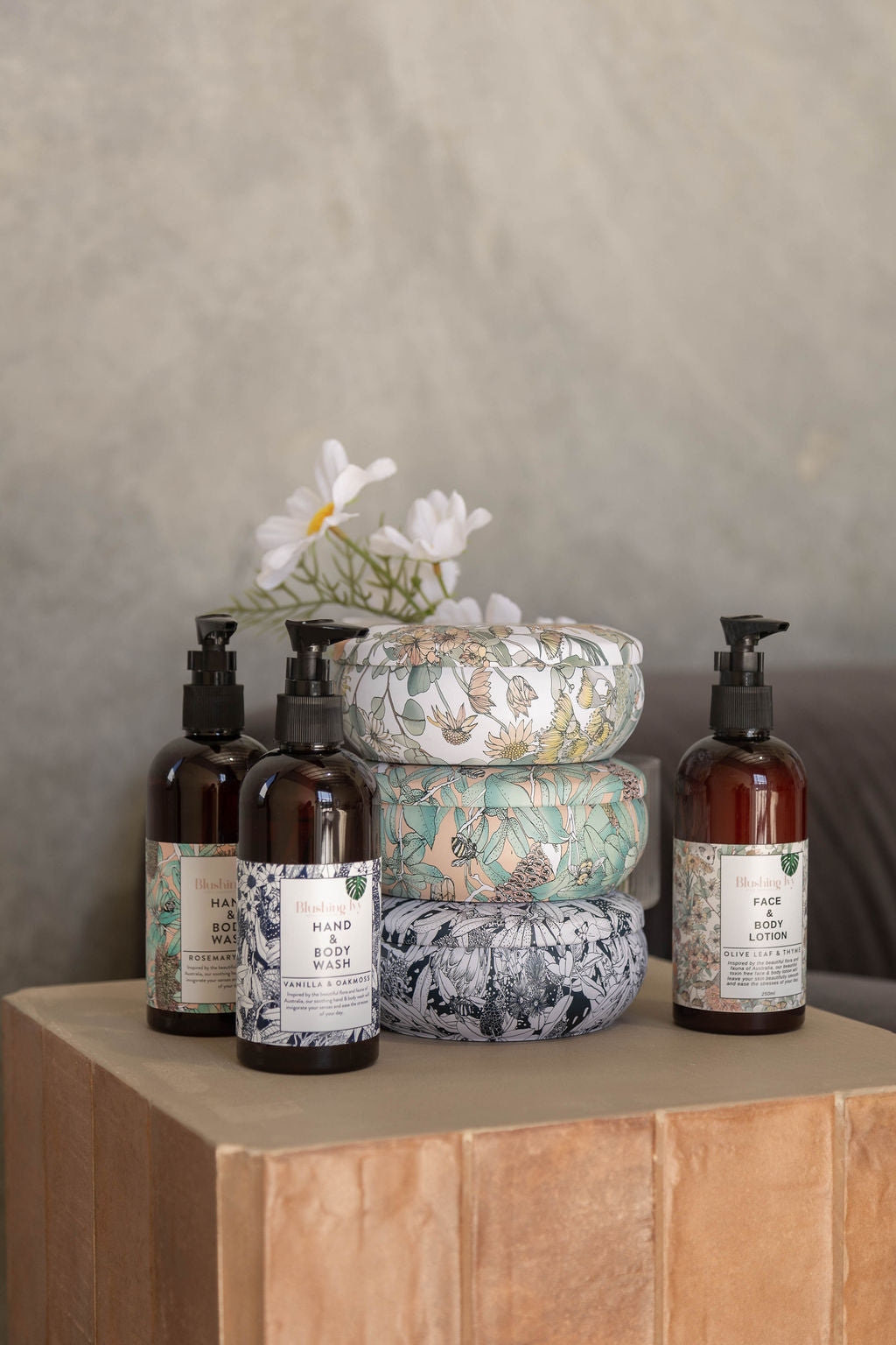 🌿 Olive Leaf & Thyme – a calming, herbaceous blend that brings the bush to your bathroom