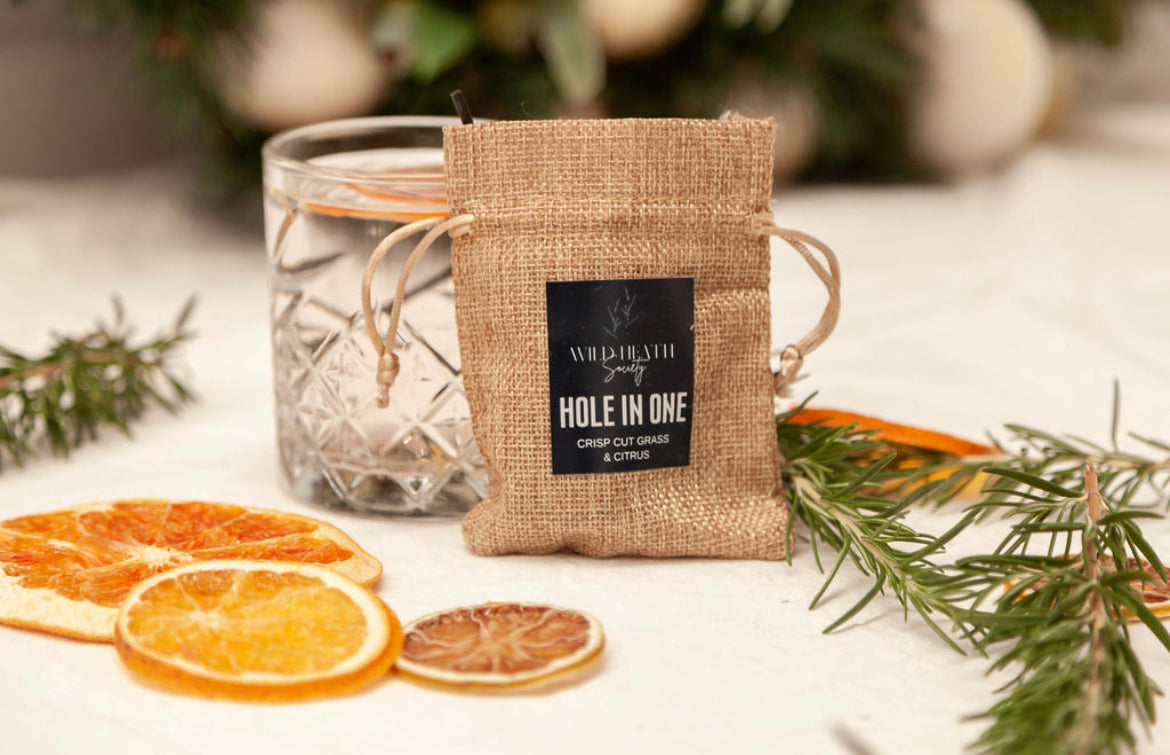 HOLE IN ONE: Fresh and crisp as a dewy meadow, this nostalgic fragrance will conjure up images of a freshly mown lawn and that perfect shot. Top notes of green leaves and crisp grass with a mellow base of silkwood and citrus.